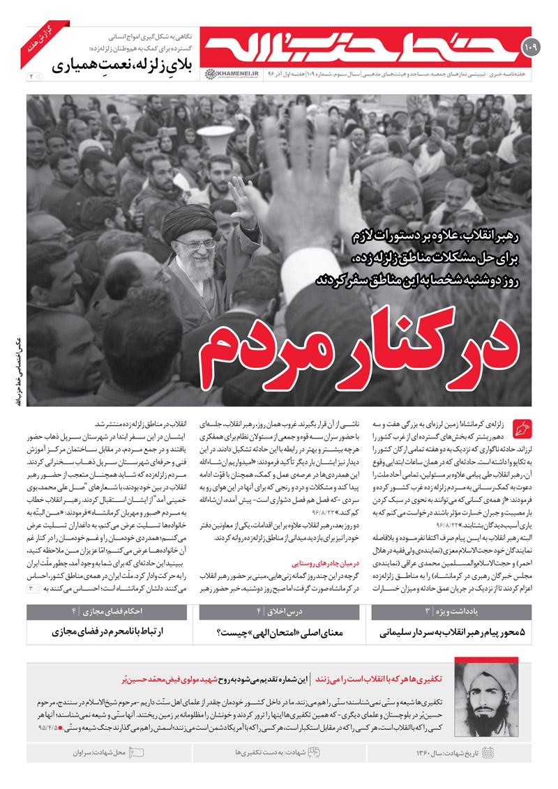 صدونهمین شماره از نشریه خط حزبالله همراه با یادداشتی دربارهی مجموعه اقدامات رهبر انقلاب دربارهی زلزلهی کرمانشاه منتشر شد.