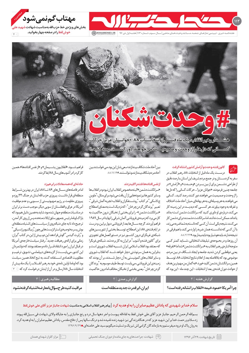 صدوسیزدهمین شمارهی خط حزبالله به روح پرفتوح شهید علی خوشلفظ تقدیم شده است.
