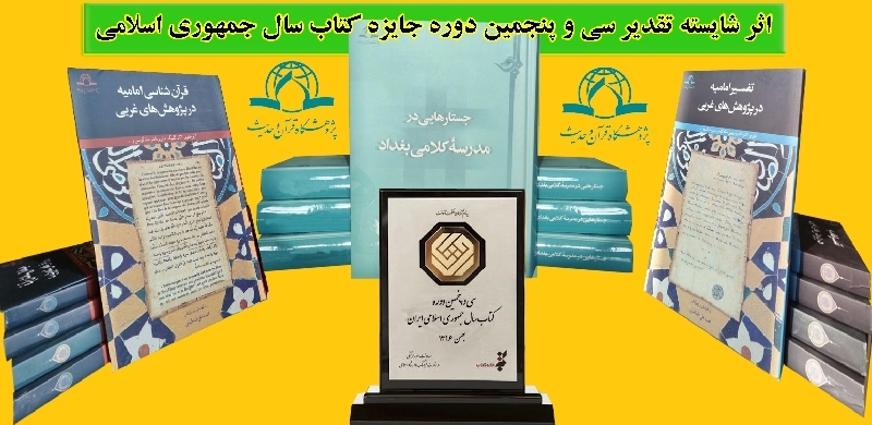 همچنين در بخش «كلام» از بين ۶ آثار راه يافته به مرحله نهایی داوري، كتاب«جستارهايي در مدرسه كلامي بغداد»از آثار پژوهشگاه قرآن و حدیث، تالیف جمعی از نویسندگان در ۶۵۷ صفحه به عنوان اثر شایسته تقدیر سي و پنجمين دوره جایزه کتاب سال جمهوری اسلامی شناخته شد.