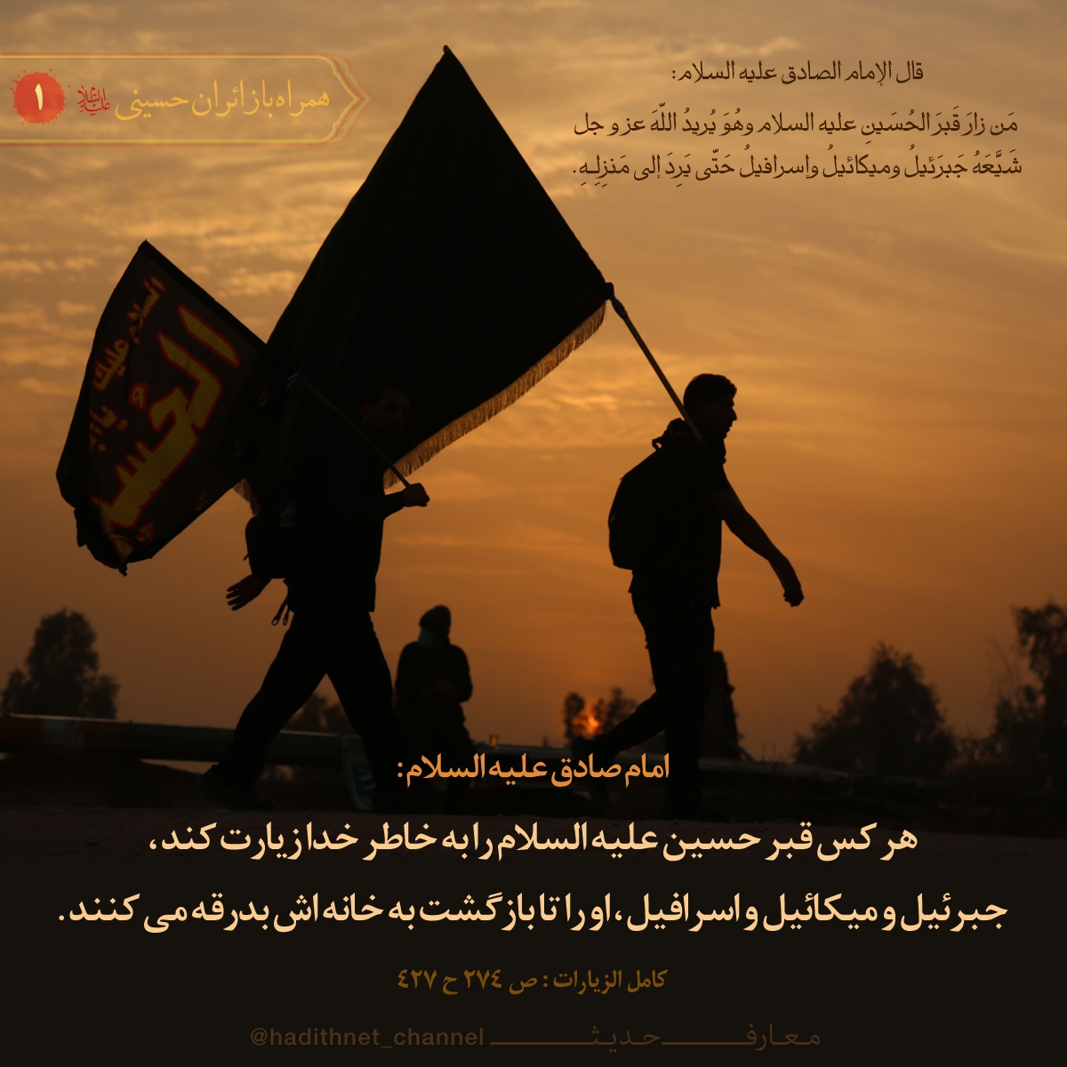 مَن زارَ قَبرَ الحُسَينِ عليه السلام وهُوَ يُريدُ اللّهَ عز و جل شَيَّعَهُ جَبرَئيلُ وميكائيلُ وإسرافيلُ حَتّی يَرِدَ إلی مَنزِلِـهِ؛