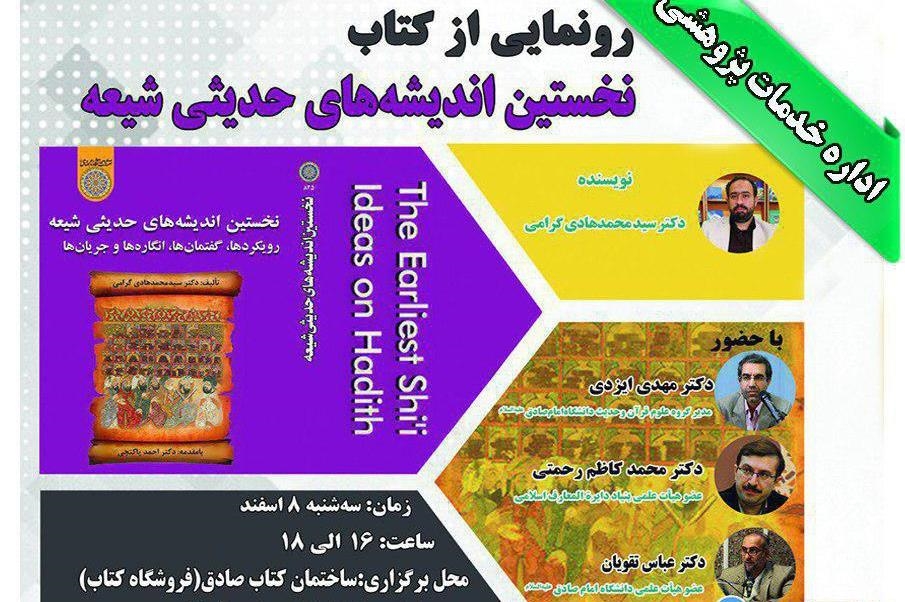 مراسم رونمایی و نقد و بررسی کتاب «نخستین اندیشههای حدیثی شیعه، رویکردها، گفتمانها، انگارهها و جریانها» فردا ساعت ۱۶ تا ۱۸ در ساختمان کتاب صادق (فروشگاه کتاب) جنب درب اصلی دانشگاه امام صادق(ع) برگزار میشود.