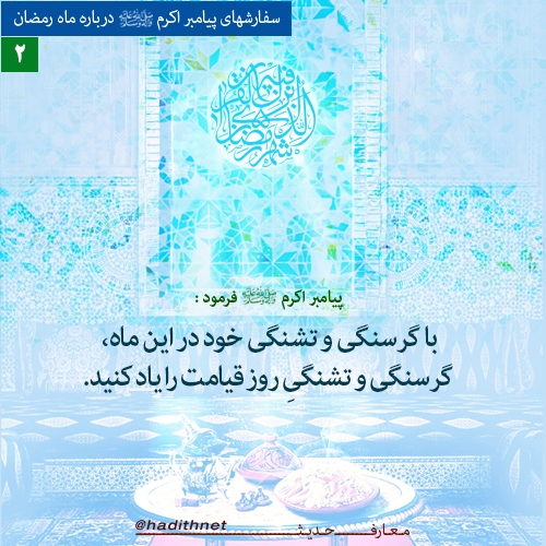 با گرسنگى و تشنگى خود در اين ماه، گرسنگى و تشنگىِ روز قيامت را ياد كنيد.