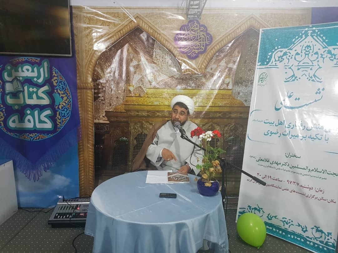 به گزارش خبرگزاری شبستان، نشست علمی «بررسی منش رفتاری اهلبیت(ع) با تکیه بر میراث رضوی» با حضورحجت الاسلام والمسلمین مهدی غلامعلی، عضو هیئت علمی دانشگاه قرآن و حدیث در بیست و ششمین نمایشگاه قرآن کریم برگزار شد.