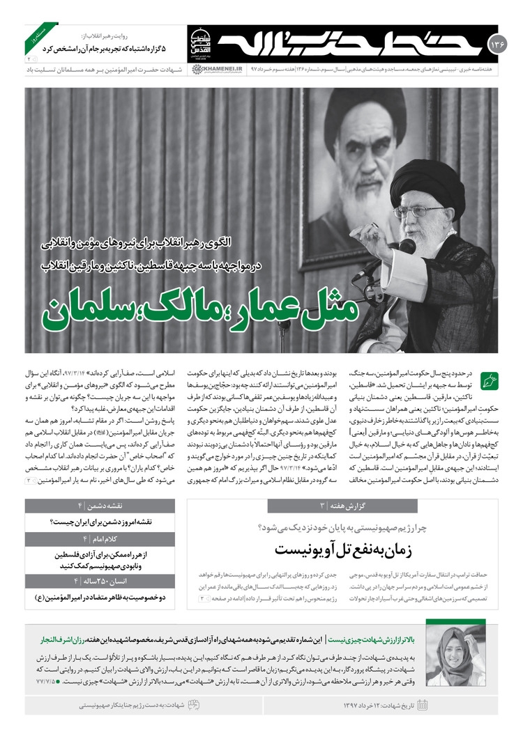 بعد از امام راه امام را موبهمو دنبال کردهایم، دو خصوصیت به ظاهر متضاد در امیرالمؤمنین(ع)، از هر راه ممکن برای آزادی فلسطین و نابودی صهیونیسم کمک کنید و... عناوین بخشهای دیگر نشریه خط حزبالله است که مخاطبین گرامی میتوانند با مراجعه به نشریه این مطالب را مورد مطالعه قرار دهند.