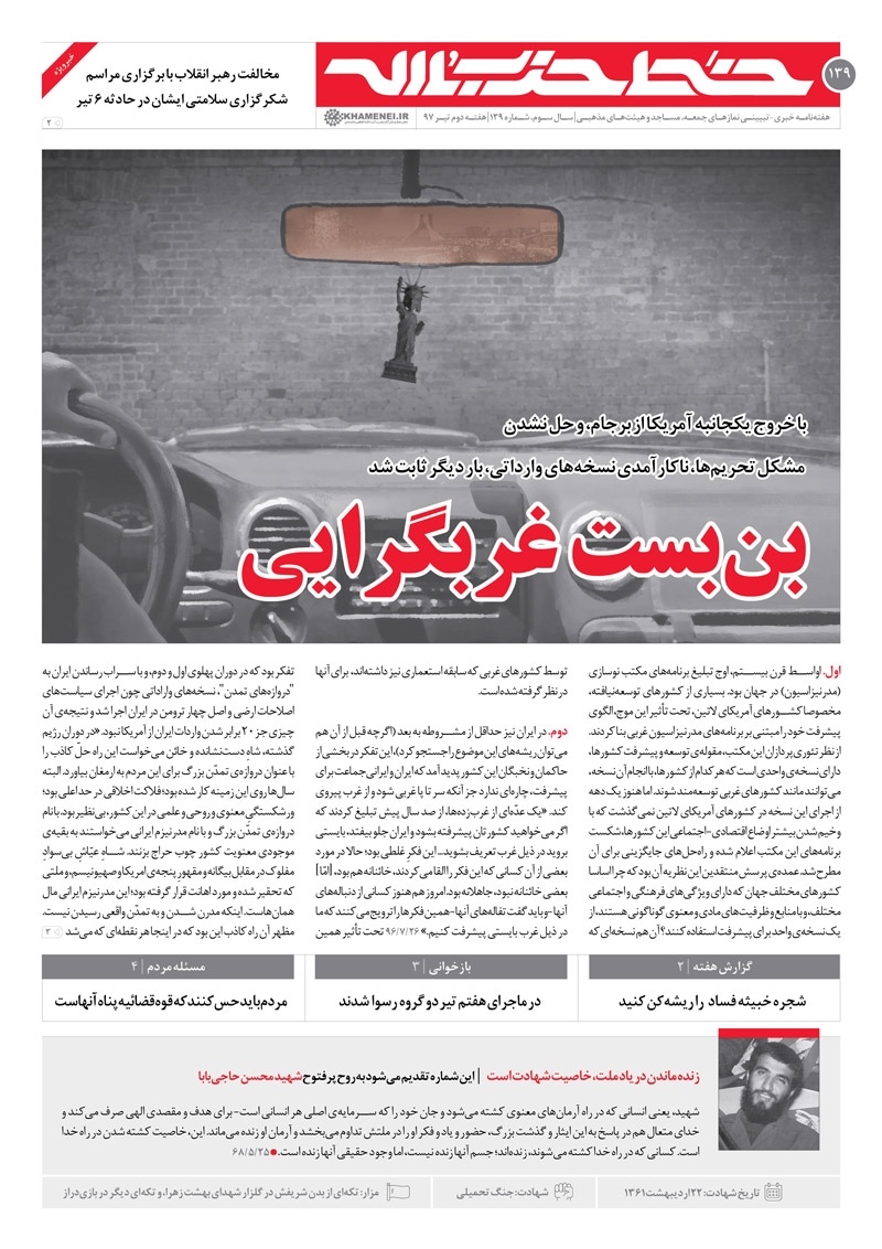 نشریه خط حزبالله با توجه به خروج یکجانبه آمریکا از برجام و حل نشدن تحریمها در جدیدترین سخن هفته خود با عنوان «بنبست غربگرایی» به ناکارآمدی این نسخههای وارداتی برای حل مشکلات کشور پرداخته است. در بخشی از متن چنین میخوانیم: درست گفتهاند "من جرّب المجرّب حلّت به النّدامة." یعنی «اگر از تجربهها درس نگرفتیم، قطعاً ضرر خواهیم کرد. باید تجربهها را در مقابل چشم خودمان بگذاریم، ملاحظه کنیم و از این تجربهها درس بگیریم.»(۱۳۹۷/۰۳/۰۲) امروز اگر برخی افراد، دچار فراموشی تاریخی شده و تجربههای صد سال اخیر این کشور در تعامل با غرب را، فراموش کردهاند، حداقل تجربهی چند سال اخیر پیش روی ماست. در سالهای اخیر، با این تصور که میتوان با آمریکا نشست و به نتیجهی مطلوب رسید و مشکل کشور یعنی تحریمها را حل کرد، بر سر میز مذاکرات حاضر شدیم. مذاکرات گرچه با نگارش متنی موسوم به "برجام" به انتها رسید، اما نه تنها مشکل تحریمها حل نشد، بلکه تحریمهای جدیدی هم مشمول ایران شد. تجربهی برجام بار دیگر نشان داد که با نسخههای وارداتی، نمیتوان مشکل کشور را حل کرد