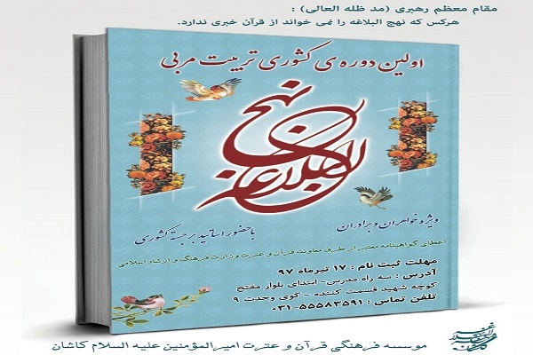 ثبتنام نخستین دوره تربیت مربی کشوری نهج البلاغه، ویژه بانوان و آقایان تا ۱۷ تیرماه از سوی مؤسسه امیرالمومنین(ع) کاشان ادامه دارد.