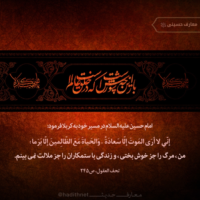 إنّي لا أرَى المَوتَ إلاّ سعادَةً ، و لاَ الحياةَ مَع الظالِمينَ إلاّ بَرَما؛