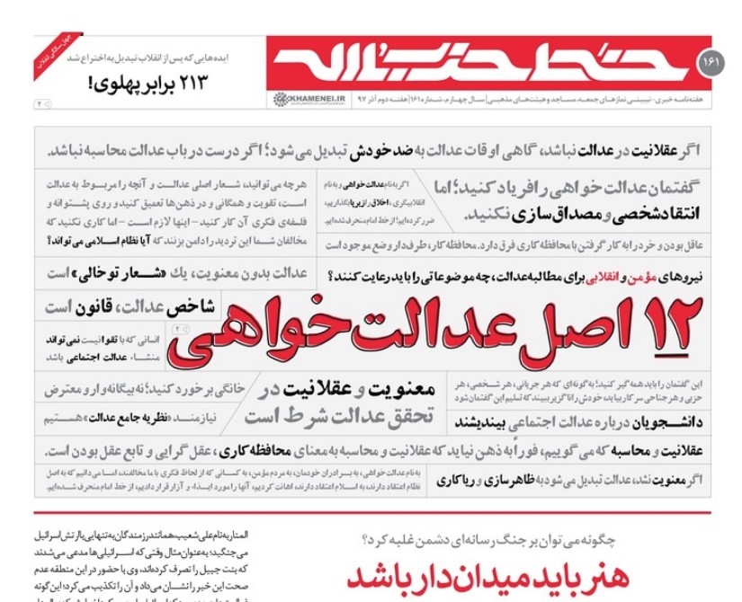 صدوشصتویکمین شماره نشریه خط حزبالله با عنوان «دوازده اصل عدالتخواهی» منتشر شد.