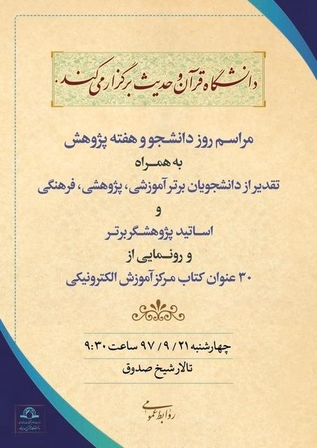 این مراسم روز چهار شنبه ۲۱ آذرماه در تالار شیخ صدوق(ره) دانشگاه قرآن و حدیث(قم) برگزار می شود.