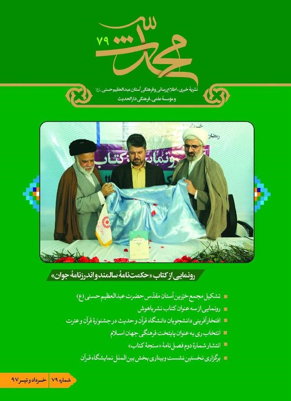 هفتاد و نهمین شماره «محدث» (خرداد و تیر 97)، به رویدادهای دانشگاه و پژوهشگاه قرآن و حدیث، خبرهای فرهنگی و انتشارات موسسه علمی - فرهنگی دارالحدیث و همچنین اخبار آستان حضرت عبدالعظیم(ع) اختصاص دارد.