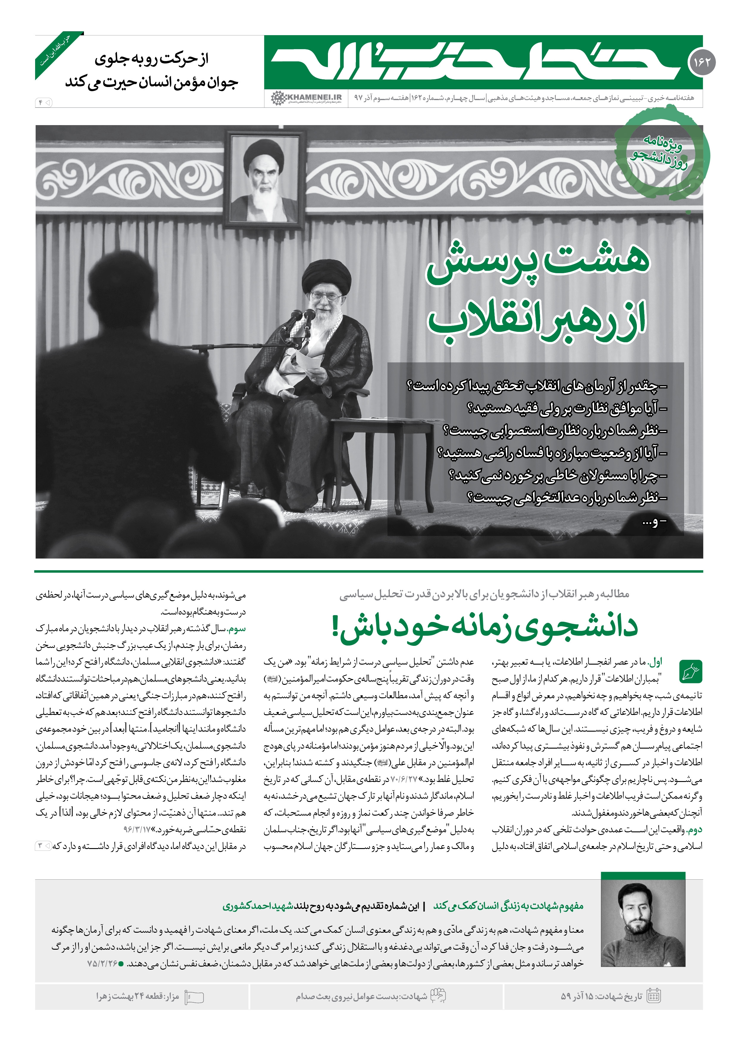 صدوشصتودومین شمارهی نشریهی خط حزبالله با عنوان «هشت پرسش از رهبر انقلاب» با محوریت روز دانشجو منتشر شد.