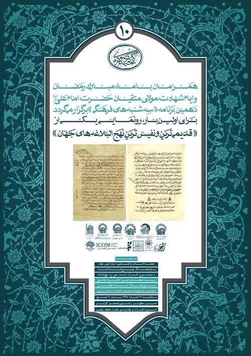 در دهمین سهشنبۀ فرهنگی سازمان کتابخانهها، موزهها و مرکز اسناد آستان قدس رضوی از قدیمیترین و نفیسترین نسخۀ خطی نهج البلاغه رونمایی میشود.
