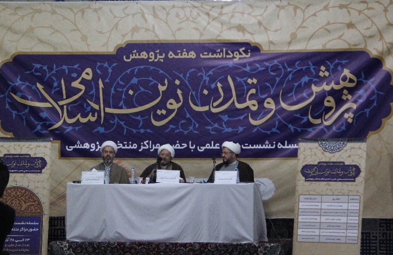 » گفتنی است این نشست از سلسله نشست های علمی به مناسبت هفته پژوهش با شعار "پژوهش معنویت و اخلاق با موضوع پژوهش های اسلامی در معنویت و اخلاق؛ بایسته ها و چالش ها"، با سخنرانی حجج اسلام آقایانعباس پسندیده،مسعود آذربایجانیومحمد عالم زاده نوری، از سوی پژوهشگاه قرآن و حدیث، با شعار «پژوهش و تمدن نوین اسلامی» با همکاری معاونت پژوهش حوزه های علمیه و مرکز تخصصی اخلاق دارالهدی حوزه در روز دوشنبه ۲۵ آذر ۹۸ ساعت ۱۸ در سالن اجتماعات مدرسه علمیه فیضیه برگزار گردید.