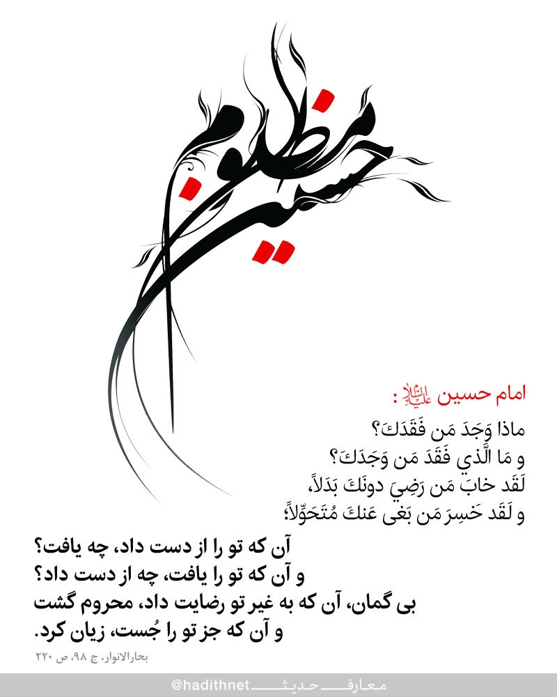 ماذا وَجَدَ مَن فَقَدَكَ؟ ومَا الَّذي فَقَدَ مَن وَجَدَكَ ؟ لَقَد خابَ مَن رَضِيَ دونَكَ بَدَلاً، ولَقَد خَسِرَ مَن بَغى عَنكَ مُتَحَوِّلاً؛