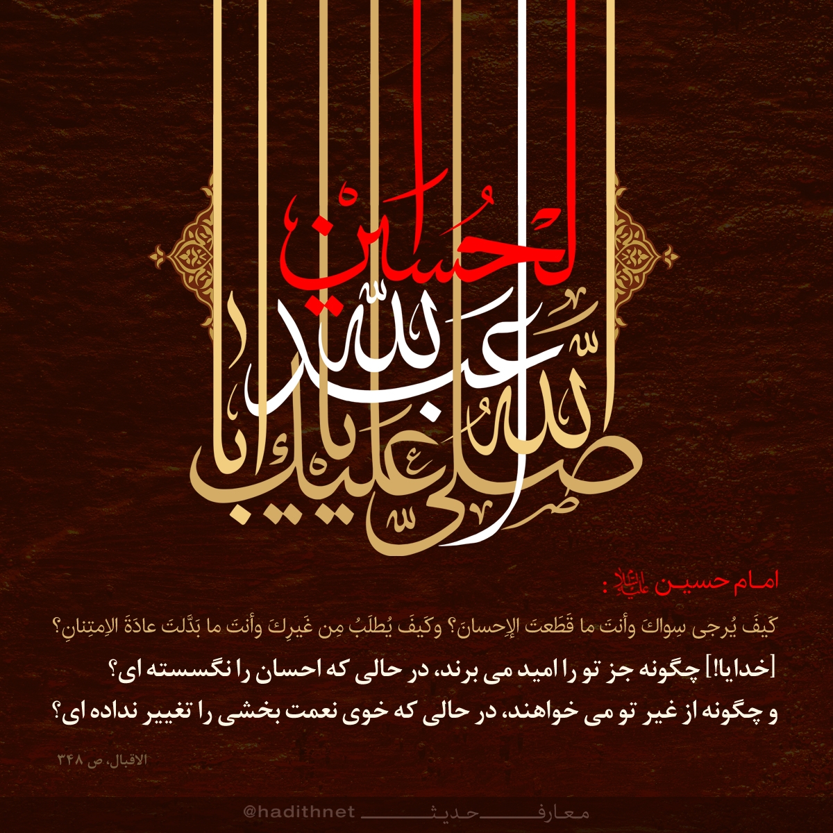 كيفَ يُرجى سِواكَ وأنتَ ما قَطَعتَ الإِحسانَ؟ وكَيفَ يُطلَبُ مِن غَيرِكَ وأنتَ ما بَدَّلتَ عادَةَ الاِمتِنانِ؟