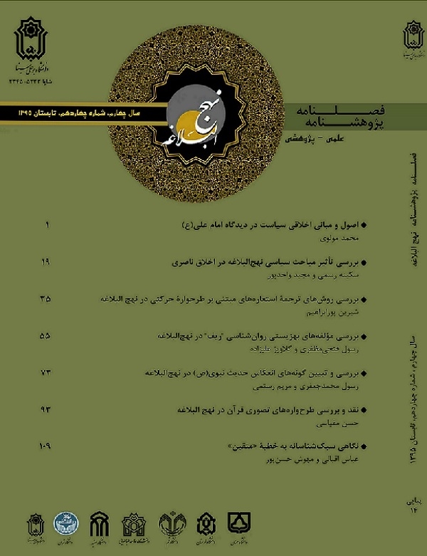 در چکیده مقاله «تبیین مشروعیت حکومت علوی در پرتو نهج البلاغه» میخوانیم: «منشأ مشروعیت حکومتها از اساسیترین مباحث در حوزة مطالعات سیاسی است که به جهت تأثیرگذاری آن در کارآمدی، بقا و تثبیت حکومتها، از مباحث ضروری و مورد اهتمام تلقی میشود. مقاله حاضر با نگاه کلامی و با روش توصیفی – تحلیلی مبانی مشروعیت حکومت علوی را از دیدگاه ایشان در نهجالبلاغه مورد بررسی و تحلیل قرار داده است. نگارنده در این پژوهش ابتدا موارد استشهاد حضرت(ع) بر مشروعیت حکومت خود را احصا کرده و سپس به تبیین چگونگی مشروعیت و حقانیت حکومت امام علی(ع) با تأکید بر سخنان امام (ع) در نهجالبلاغه پرداخته است. یافتههای پژوهش حاکی از آن است که امام علی(ع) در موارد فراوانی در این کتاب شریف به بحث پیرامون حقانیت خود به مقام ولایت و خلافت پرداخته و با صراحت تمام الهی بودن حاکمیت خویش را به پشتوانه دلایل متعدد به اثبات رسانده است. در دیدگاه حضرت(ع) منصب ولایت و سرپرستی جامعه، مقام و منصبی الهی است و منشأ مشروعیت حکومت مستند به اراده خداوند است. بر این اساس تحقیق مشروعیت حکومت از دیدگاه ایشان بر پایه ملاکهایی نظیر نصب از سوی خداوند، نص پیامبر، عصمت و اعلمیت استوار است. در کنار این ملاکهای اصلی و بنیادین، حضرت مطابق ملاکهایی که خلفا براساس آن حق حاکمیت را برای خود محقق میدانستند نیز به احتجاج برخاسته و در مقام اقناع به مقبولات مخالفین خود استناد کرده و از این رهگذر نیز حق ولایت و مشروعیت حاکمیت خود را به اثبات رسانیده است.»
