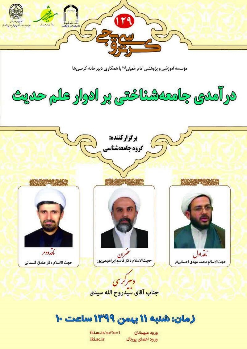 موسسه آموزشی و پژوهشی امام خمینی«ره» با همکاری دبیرخانه پیوسته نشستهای علمی «سید مرتضی» و مجله دانش ها و آموزه های قرآن و حدیث برگزار می کند: نشست مجازی در آمدی جامعهشناختی بر ادوار علم حدیث