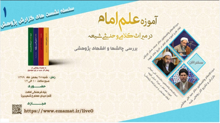نشست «آموزه علم امام در میراث کلامی و حدیثی شیعه؛ بررسی چالشها و افقهای پژوهشی»، از سلسله نشستهای گزارش پژوهش، شنبه ۲۵ بهمنماه از ساعت ۱۰ تا ۱۲ برگزار و از طریق نشانیهای