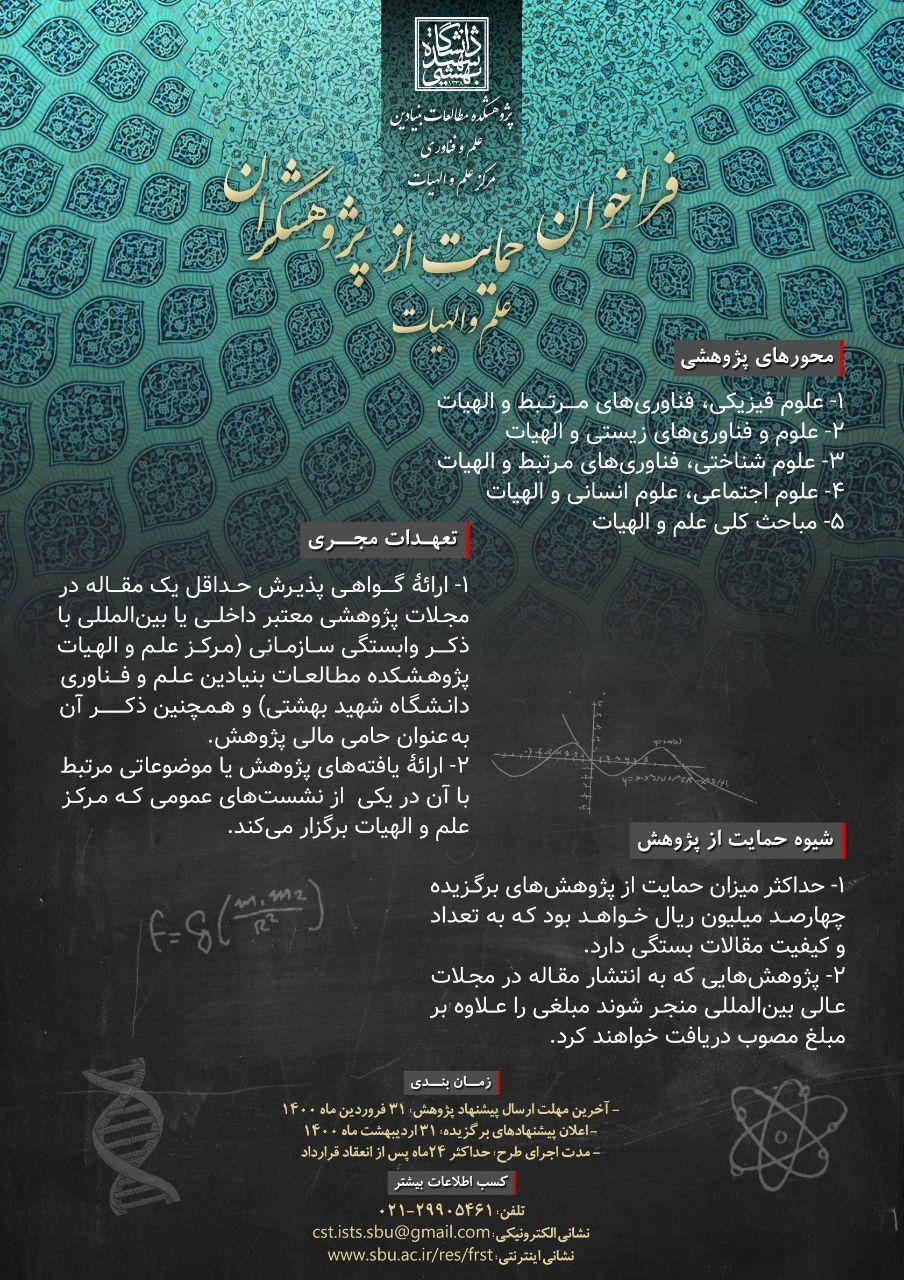 مرکز علم و الهیات پژوهشکده مطالعات بنیادین علم و فناوری دانشگاه شهید بهشتی قصد دارد برنامه پژوهشی ـ آموزشی ـ ترویجی جامعی را در حوزه علم و الهیات اجرا کند.