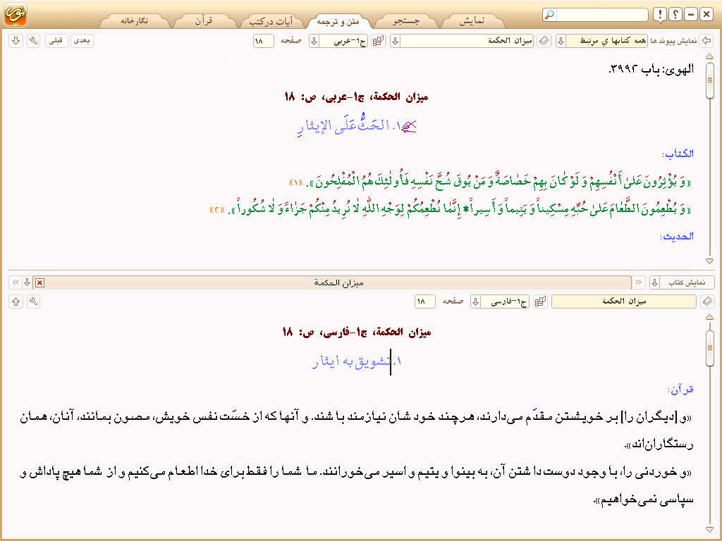 | | محتوا : | • متن کامل کتاب میزان الحکمه در 14 جلد به همراه ترجمه فارسی |