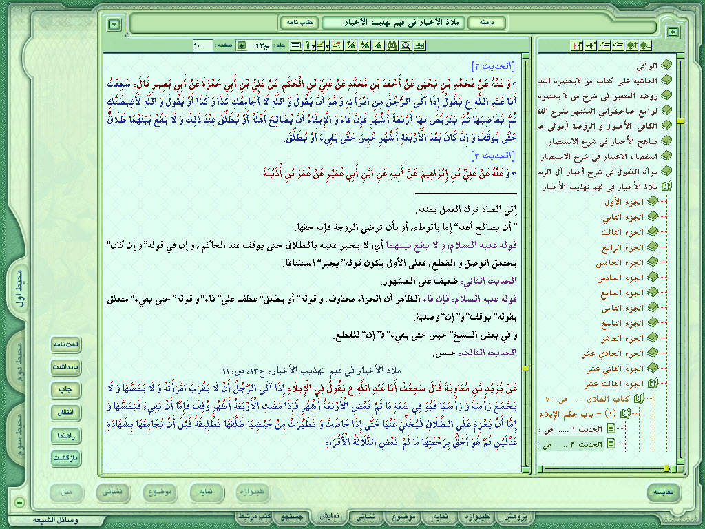 ۴- با توجه به اینکه دو نسخه چاپی از این کتاب در بازار نشر موجود است، فیش های موضوعی به هر دو نسخه آدرس دهی شده و لکن با توجه به امکانات فنی در نسخه فعلی تنها اتصال کتاب با نسخه آل البیت برقرار گردیده و انشاء الله در نسخه های بعدی به نسخه اسلامیه نیز متصل خواهد شد.