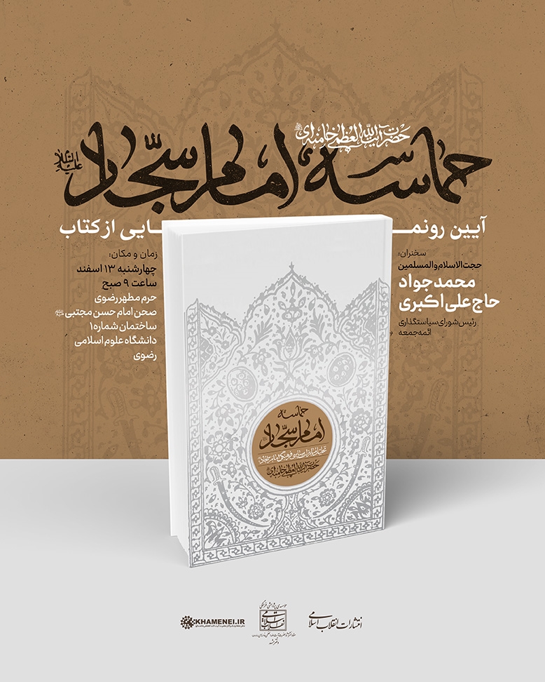کتاب «حماسه امام سجاد(ع)» مشتمل بر گفتارهایی از حضرت آیت الله خامنه ای درباره مبارزات سیاسی فرهنگی پیشوای چهارم، در مشهد رونمایی شد.