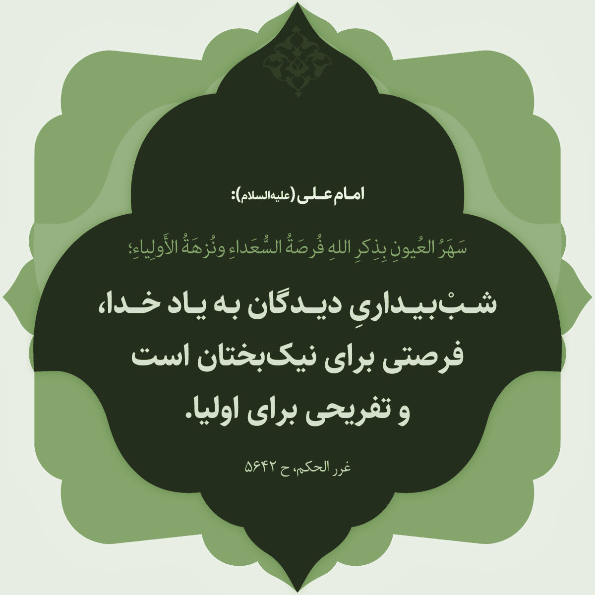 شبْ‏‌بيداریِ دیدگان به یاد خدا، فرصتی برای نیک‏بختان است و تفریحی برای‏ اولیا.