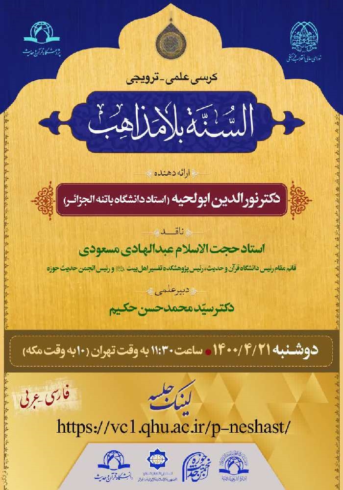 اين کرسی ترويجی با موضوع موسوعه حديثی «سلسلة السنة بلا مذاهب» و با ارائه ی نويسنده آن«دکتر نور الدين أبو لحية»؛ نقد رويکرد و نظر اين انديشمند مسلمان را هدف قرار داد.