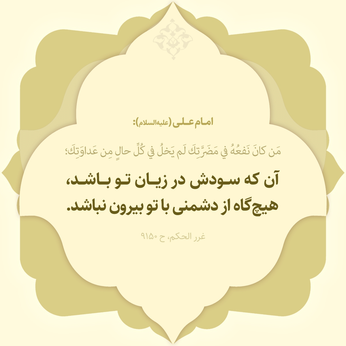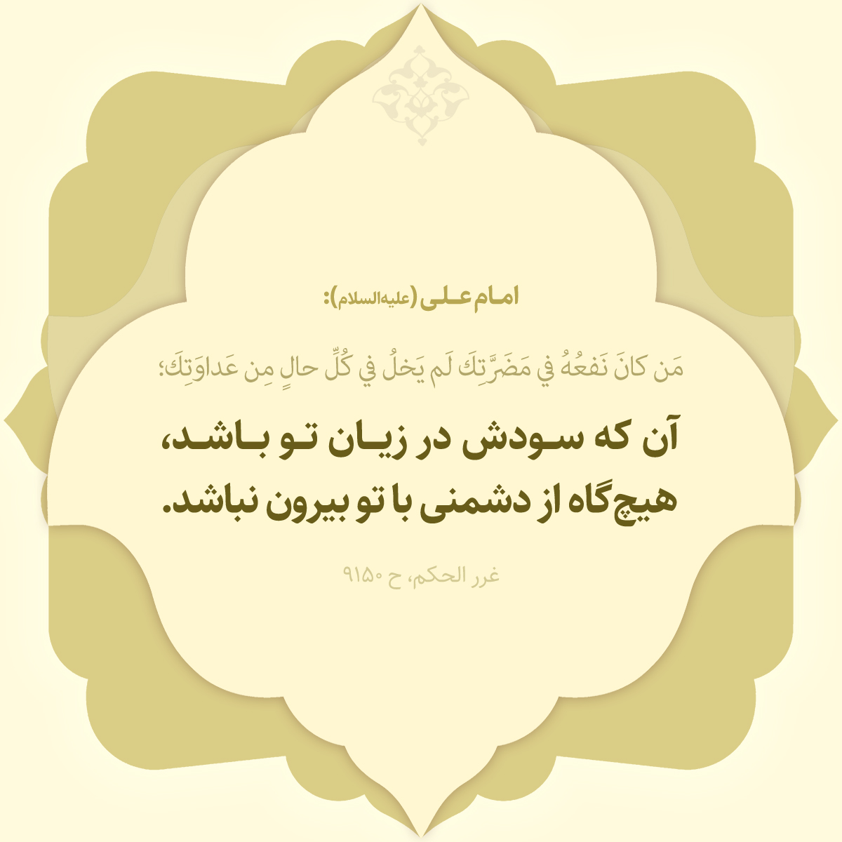 آن كه سودش در زيان تو باشد، هيچ گاه از دشمنى با تو بيرون نباشد.
