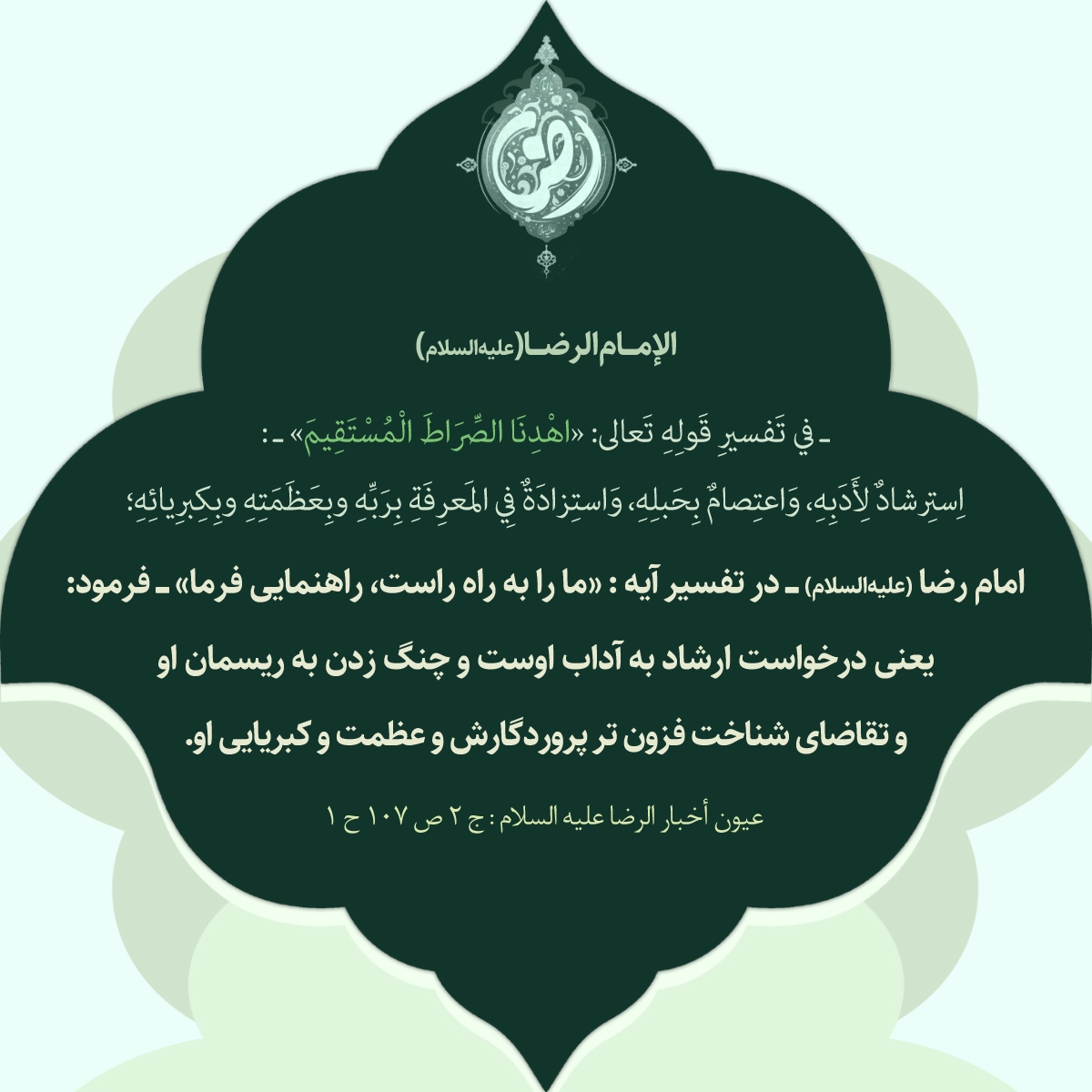 ـ في تَفسيرِ قَولِهِ تَعالى : «اهْدِنَا الصِّرَاطَ الْمُسْتَقِيمَ» ـ :اِستِرشادٌ لِأَدَبِهِ ، وَاعتِصامٌ بِحَبلِهِ ، وَاستِزادَةٌ فِي المَعرِفَةِ بِرَبِّهِ وبِعَظَمَتِهِ وبِكِبرِيائِهِ؛