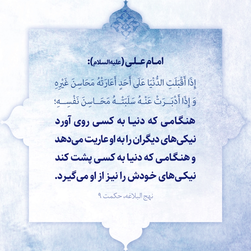 هنگامى که دنیا به کسى روى آورد نیکىهاى دیگران را به او عاریت مىدهد و هنگامى که دنیا به کسى پشت کند نیکىهاى خودش را نیز از او مىگیرد.