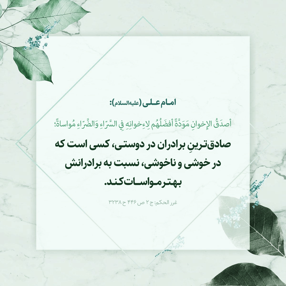 أصدَقُ الإِخوانِ مَوَدَّةً أفضَلُهُم لِاءِخوانِهِ فِي السَّرّاءِ وَالضَّرّاءِ مُواساةً؛