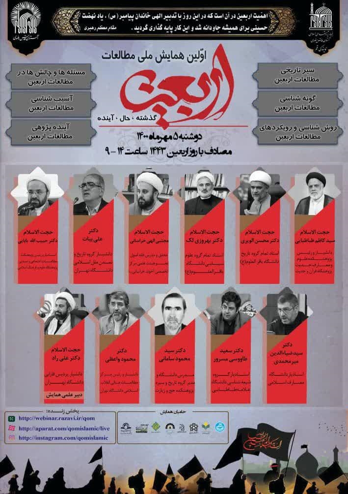 این همایش در تاریخ دوشنبه پنجم مهرماه مصادف با اربعین حسینی از ساعت ۹تا ۱۴از طریق وبینار به آدرس: