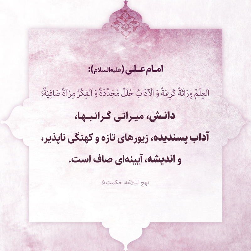 الْعِلْمُ وِرَاثَةٌ كَرِيمَةٌ وَ اَلْآدَابُ حُلَلٌ مُجَدَّدَةٌ وَ اَلْفِكْرُ مِرْآةٌ صَافِيَةٌ؛