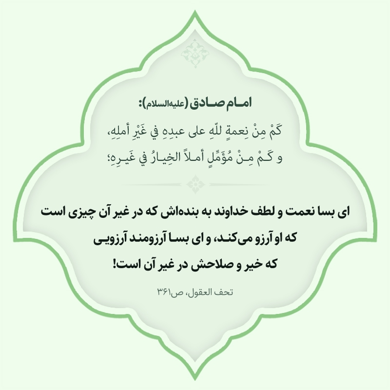 اى بسا نعمت و لطف خداوند به بنده اش كه در غير آن چيزى است كه او آرزو مى كند، و اى بسا آرزومند آرزويى كه خير و صلاحش در غير آن است!