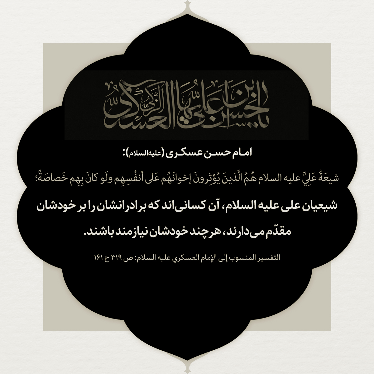 شيعيان على عليه السلام، آن كسانىاند كه برادرانشان را بر خودشان مقدّم مىدارند، هرچند خودشان نيازمند باشند.