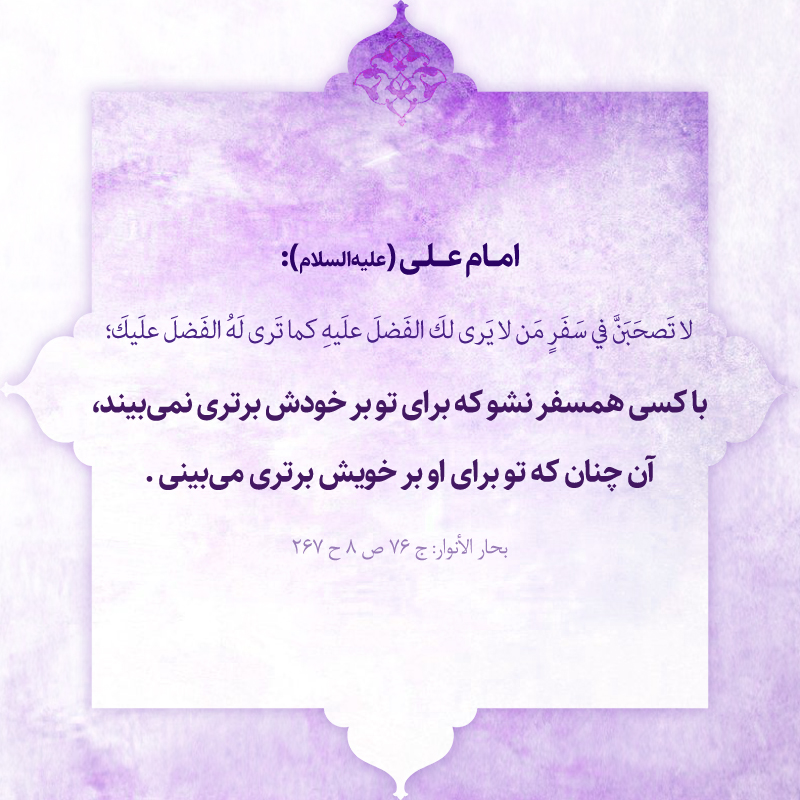 لا تَصحَبَنَّ في سَفَرٍ مَن لا يَرى لكَ الفَضلَ علَيهِ كما تَرى لَهُ الفَضلَ علَيكَ؛