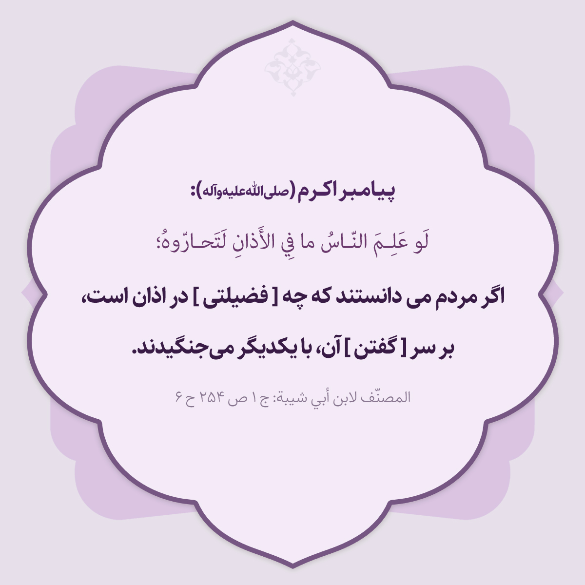 اگر مردم مى‌‌دانستند كه چه (فضيلتى) در اذان است، بر سر (گفتن) آن، با يكديگر مى‌‌جنگيدند.