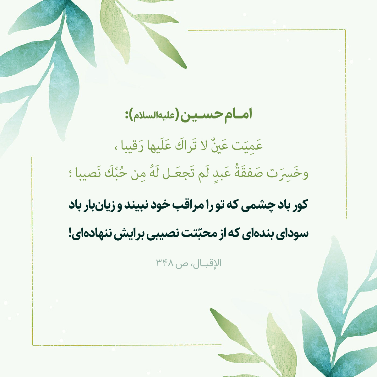 عَمِيَت عَينٌ لا تَراكَ عَلَيها رَقيبا ، وخَسِرَت صَفقَةُ عَبدٍ لَم تَجعَل لَهُ مِن حُبِّكَ نَصيبا؛