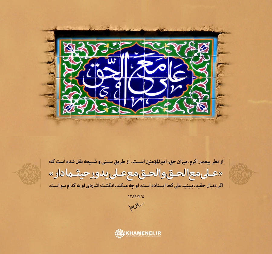 امروز شما نگاه کنید؛ حرفهای زیبا و قشنگ بر زبان سیاستمداران عالم بسیار جاری میشود - نام انسان، نام حقوق بشر، نام مردم‌سالاری، نام صلح، نام قداست - اما در دلها و در عملها، از این حقایق هیچ‌گونه خبری وجود ندارد. این وضعیت، قبل از دوران امیرالمؤمنین هم بود؛... خصوصیت او این بود که اگر اسم مردم را میآورد، برای آنها حقیقتاً ارزش قائل بود؛ نه مثل کسانی که در سطح بین‌المللی از هرچه تروریست حرفه‌ای است - که امروز حکّام صهیونیست در دنیا تروریستهای حرفه‌ای هستند - از هرچه غارتگر بین‌المللی است - که امروز پشت صحنه قدرتهای استکباری، زرسالاران و چپاولگران بین‌المللی هستند - از هرچه انسان نانجیب و متجاوز به حقوق انسان است، عملاً حمایت و پشتیبانی میکنند و خجالت هم نمیکشند و بر زبان نام حقوق بشر و انسان و مردم‌سالاری را جاری میکنند و طلبکار ملتها هم میشوند!...امیرالمؤمنین نام مردم را می­آورد، اما به معنای حقیقی کلمه طرفدار مردم و ضعفا بود.(۱۷)