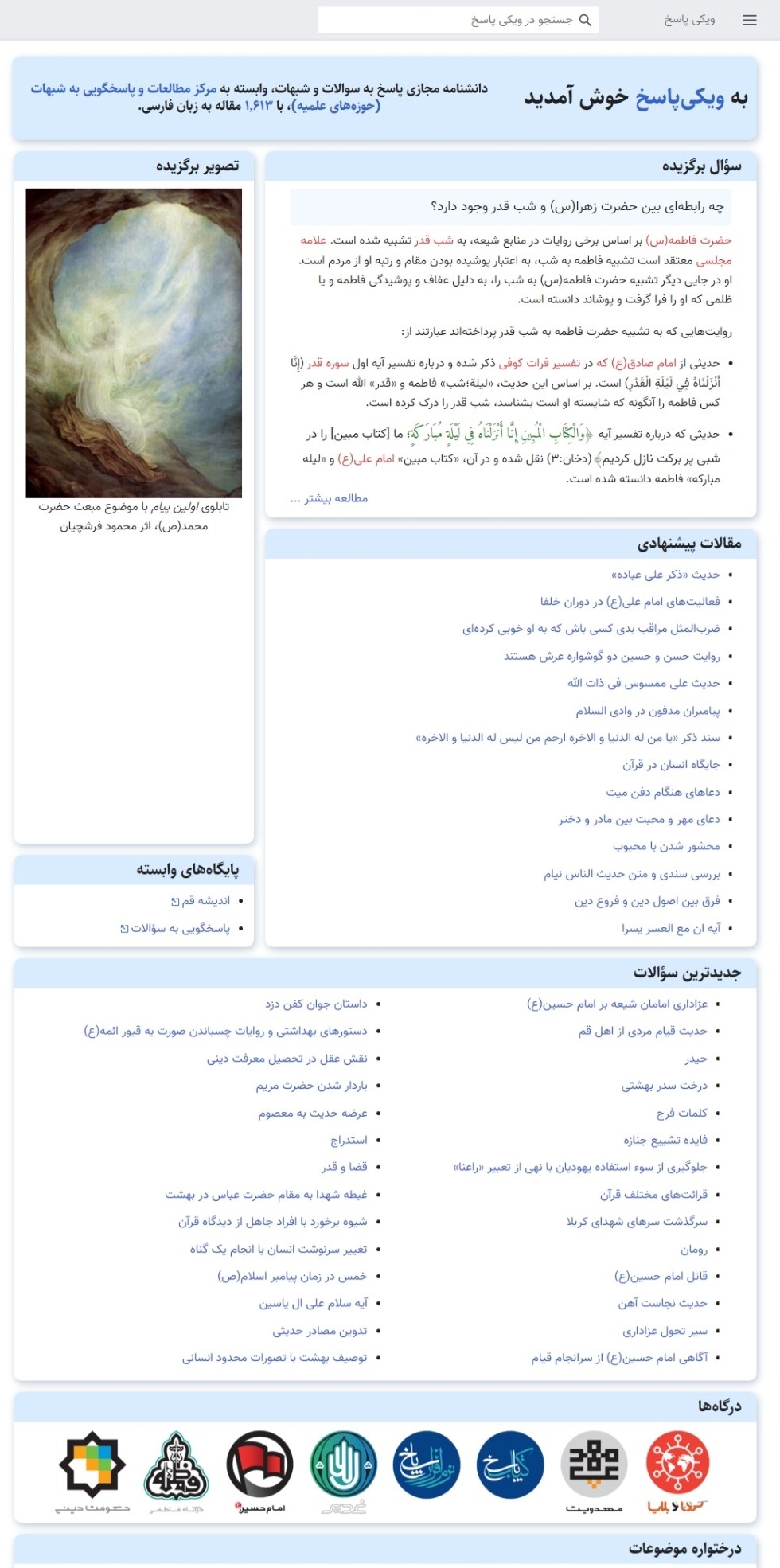 ویکی پاسخ، دانشنامه مجازی پاسخ به سوالات و شبهات،وابسته به مرکز مطالعات و پاسخگویی به شبهات حوزه علمیه قم است.