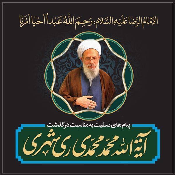 درگذشت تاسف انگیز عالم بزرگوار و خدمتگزار انقلابی جمهوری اسلامی آیت الله محمد ری شهری رضوان الله علیه والد مکرم را صمیمانه به جنابعالی، بیت شریف ری شهری و همه بستگان محترم و به دوستان و اردتمندان آن فقید سعید تسلیت عرض میکنم و از خداوند منان برای ایشان آمرزش و علو درجات و برای بازماندگان معزز صبر و اجر و سلامتی مسالت میکنم.