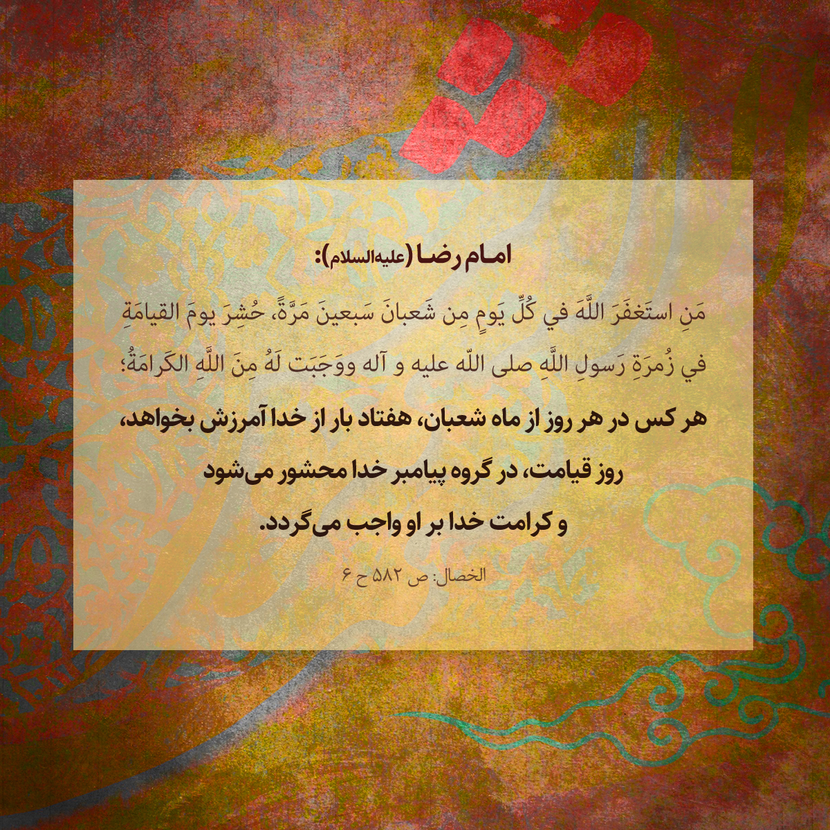 هر كس در هر روز از ماه شعبان، هفتاد بار از خدا آمرزش بخواهد، روز قيامت، در گروه پيامبر خدا محشور مىشود و كرامت خدا بر او واجب مىگردد.