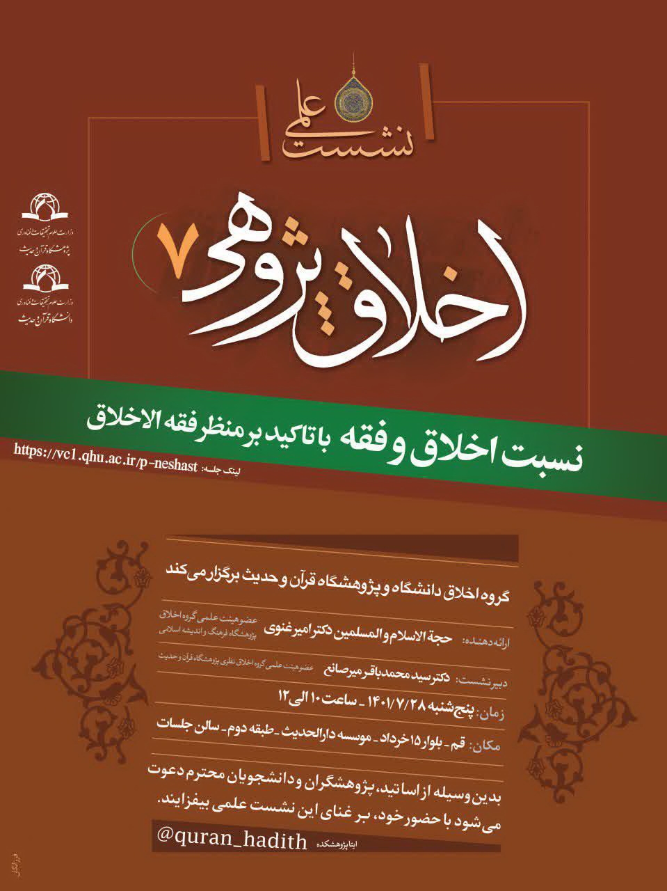 گروه اخلاق نظری و کاربردی پژوهشگاه قرآن و حدیث با همکاری گروه اخلاق دانشگاه قرآن و حدیث برگزار می کند: نشست علمی "نسبت اخلاق و فقه با تأکید بر منظر فقه الاخلاق"