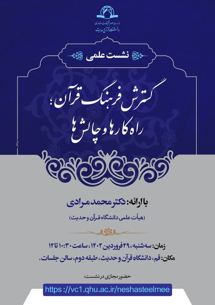 نشست علمی «گسترش فرهنگ قرآن؛ راهکارها و چالش ها» در دانشگاه قرآن و حدیث برگزار میشود.