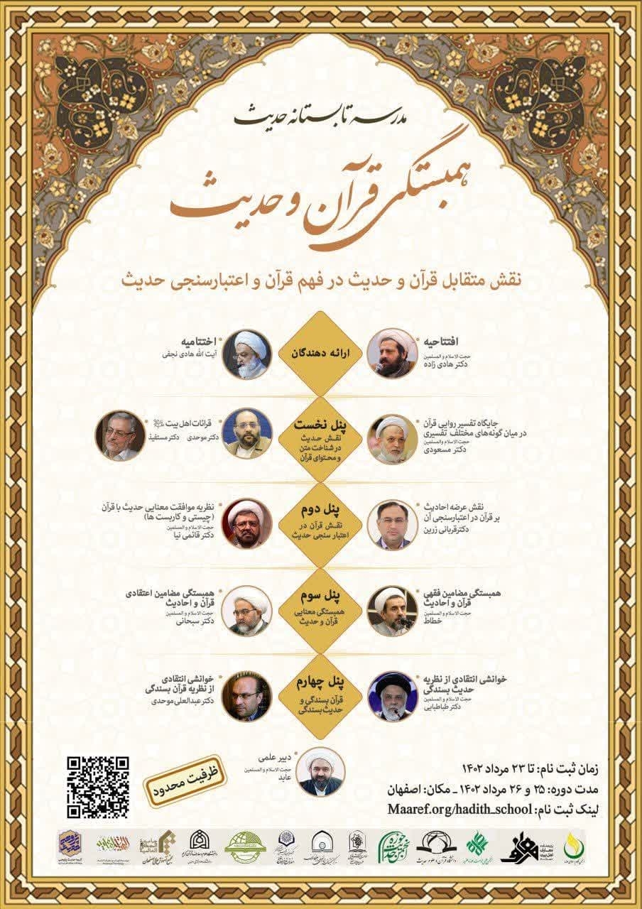 موسسه الاهیات و معارف امامیه اصفهان با همکاری دیگر نهادهای حوزوی و دانشگاهی برگزار میکنند: مدرسه حدیثی: همبستگی قرآن و حدیث؛ نقش متقابل قرآن و حدیث در فهم قرآن و اعتبارسنجی حدیث
