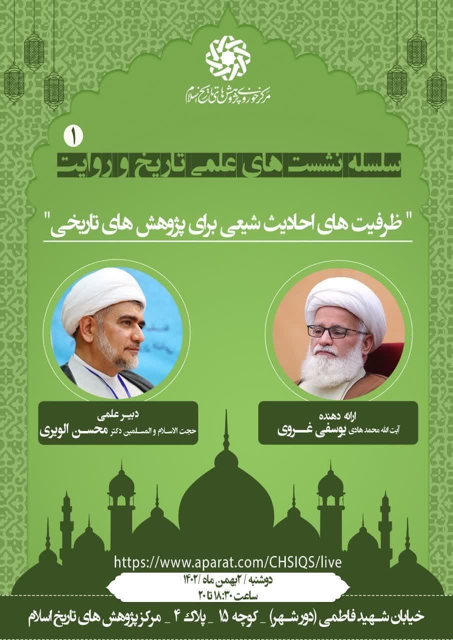 مرکز پژوهش‌های تاریخ اسلام نشست «ظرفیت‌های احادیث شیعی برای پژوهش‌های تاریخی» را برگزار می‌کند.
