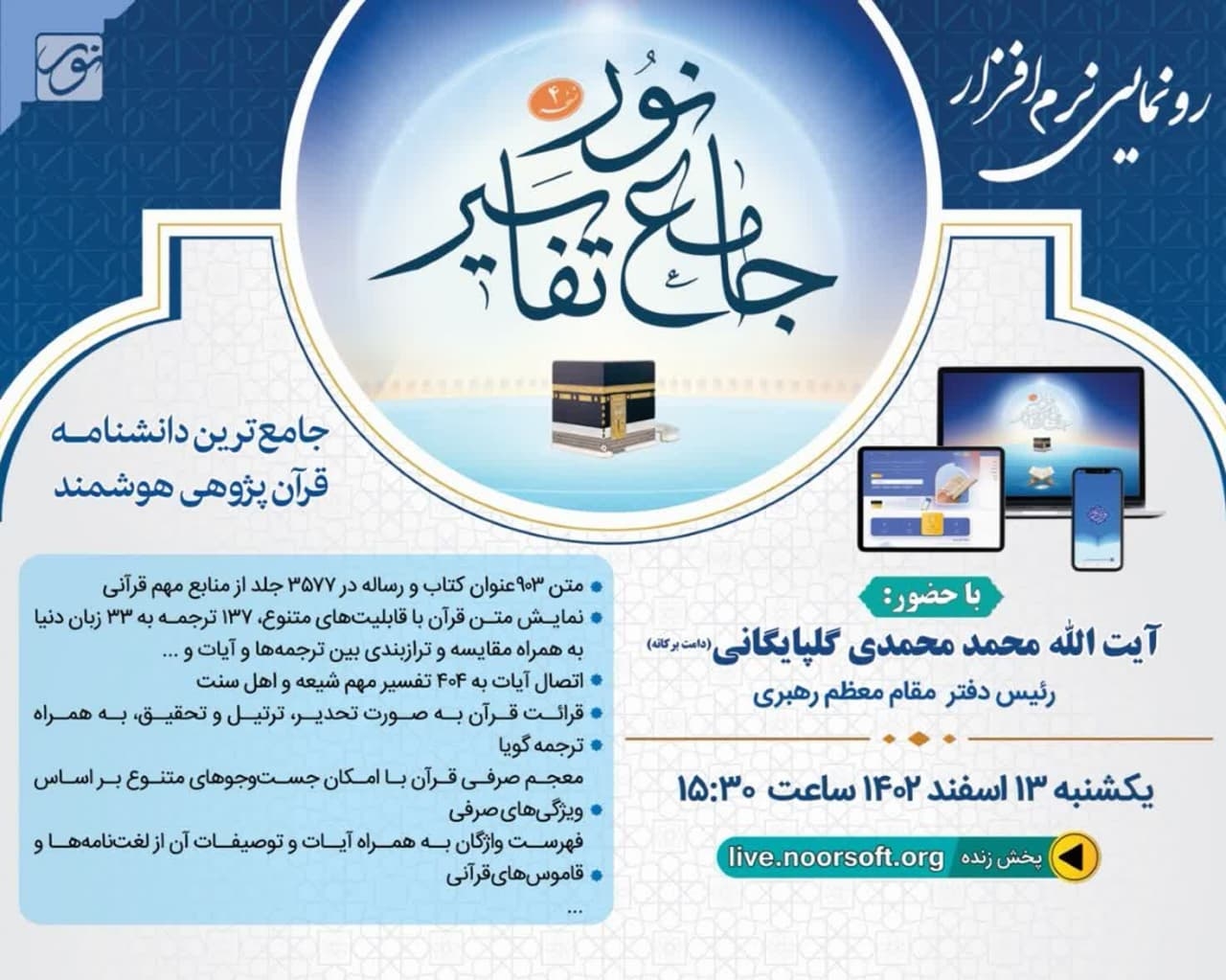 در آستانه ماه مبارک رمضان، از نرمافزار جامع تفاسیر نور نسخه 4 رونمایی خواهد شد!