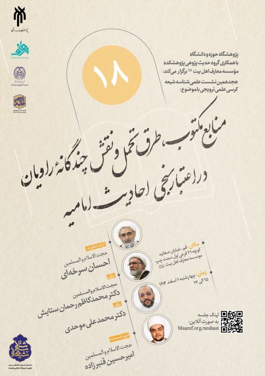هجدهمین نشست علمی شناسه شیعه با عنوان «منابع مکتوب؛ طرق تحمل و نقش چندگانه راویان در اعتبارسنجی احادیث امامیه» برگزار میشود.