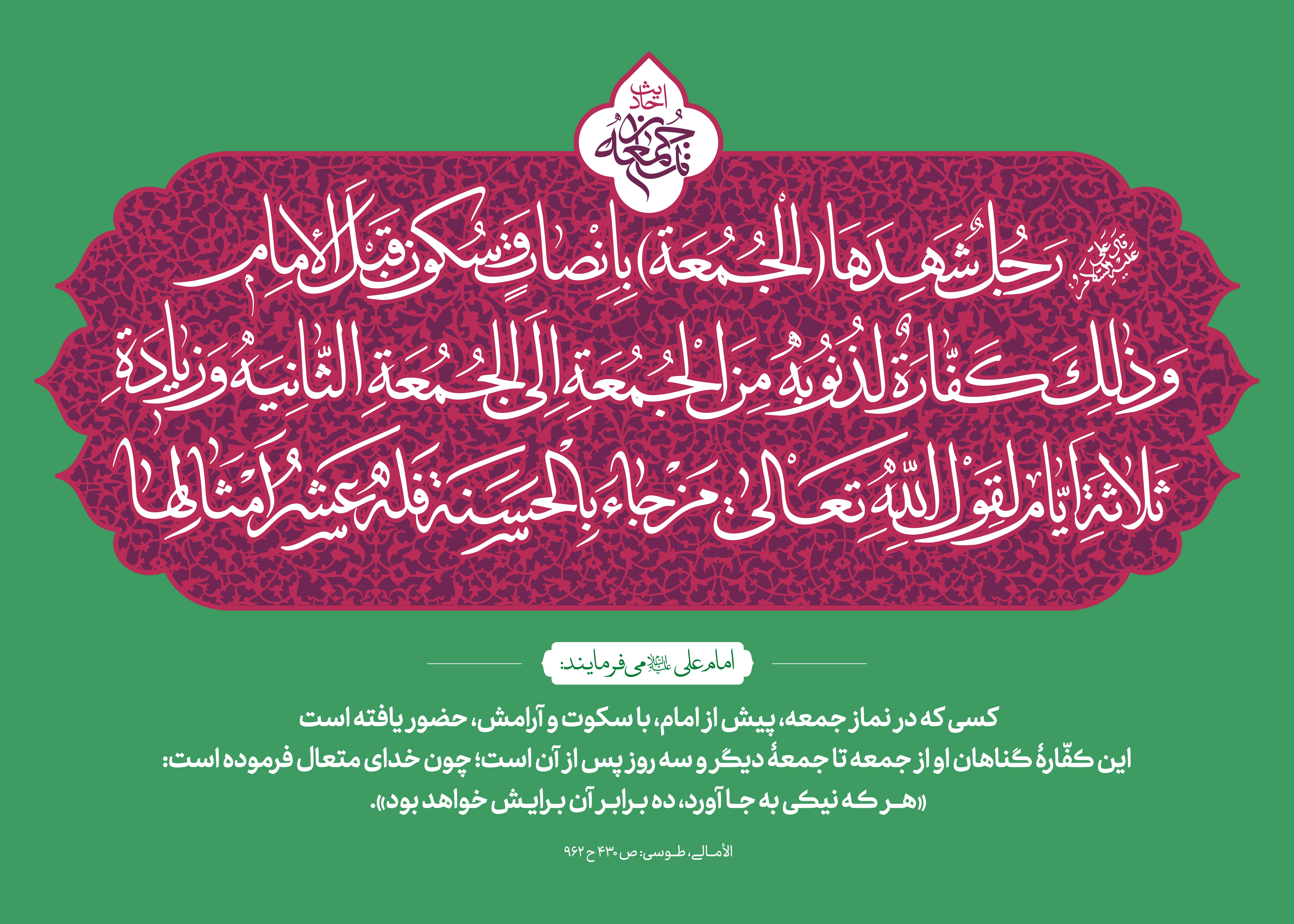 کسی که در نماز جمعه پیش از امام با سکوت و آرامش، حضور بافته است این کفاره گناهان او از جمعه تا جمعه دیگر و سه روز پس از آن است؛ چون خدای متعال فرموده است: «هر که نیکی بهجا آورد ده برابر آن برایش خواهد بود».